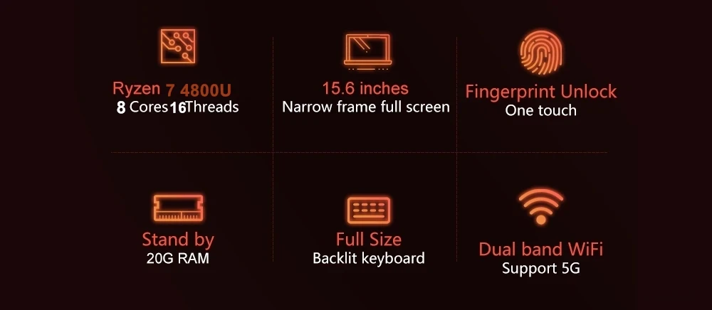 15.6 Inch Max RAM 32GB 2TB SSD Laptop Metal Ultrabook AMD Ryzen 7 4800U Windows 11 pro Gaming Computer Notebook with 5G Bluetoot