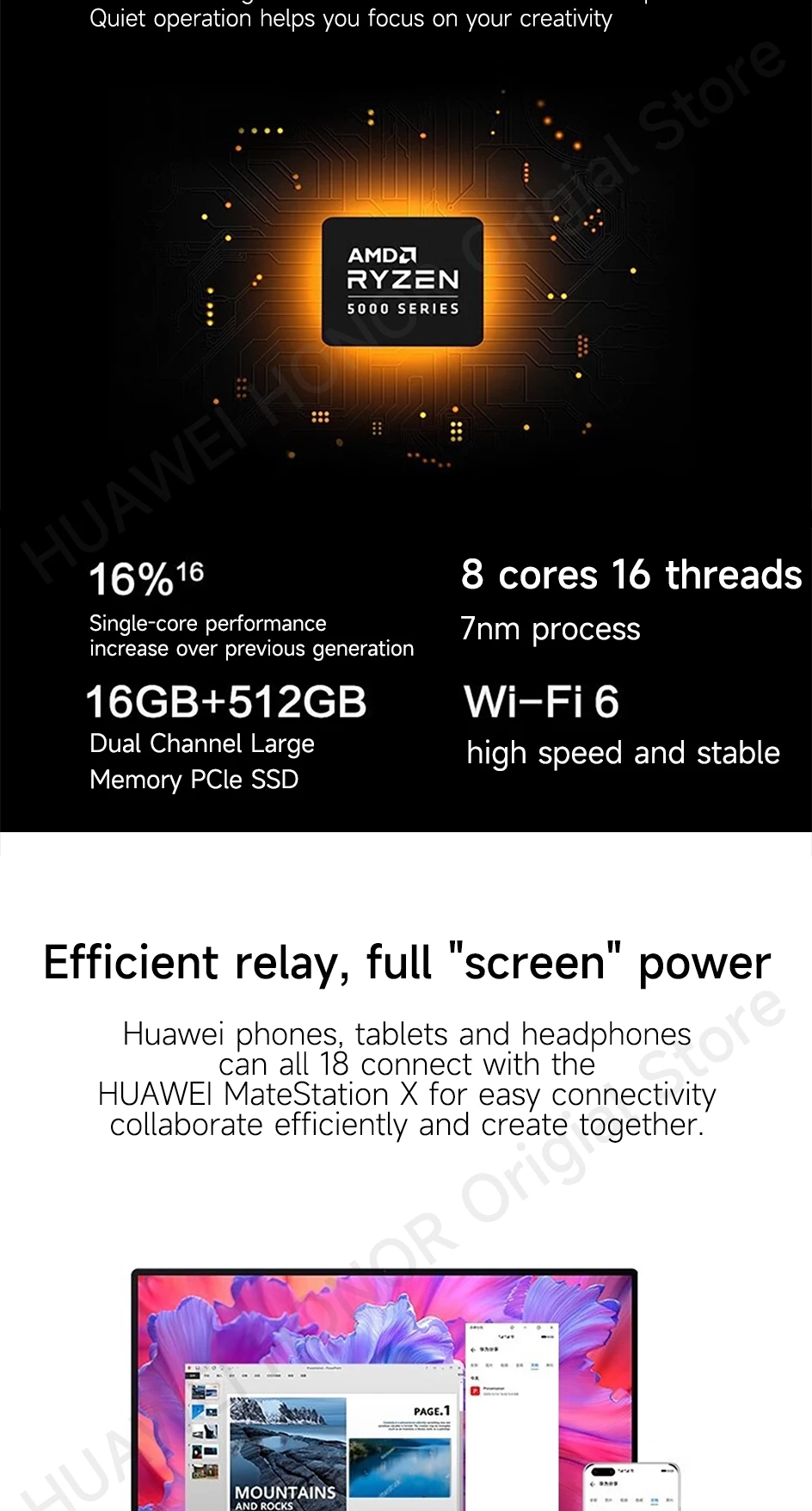 HUAWEI MateStation X All-in-One PC AMD Ryzen R5-5600h/R7-5800H 16GB 512GB 28.2-inch 4K+ Touch Screen SSD
